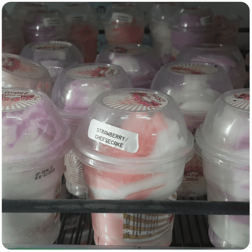 Caramel crunch, snow pie vanilla, strawberry, mint Choc
